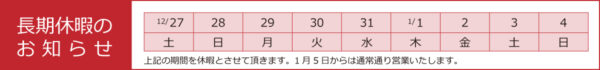連休中のご注文・お問い合わせは1月5日より順次対応を再開いたしますが